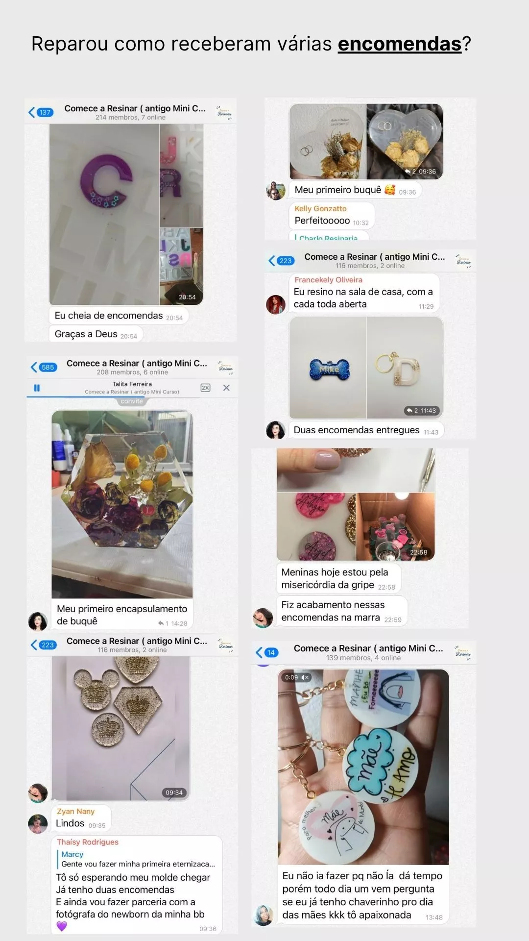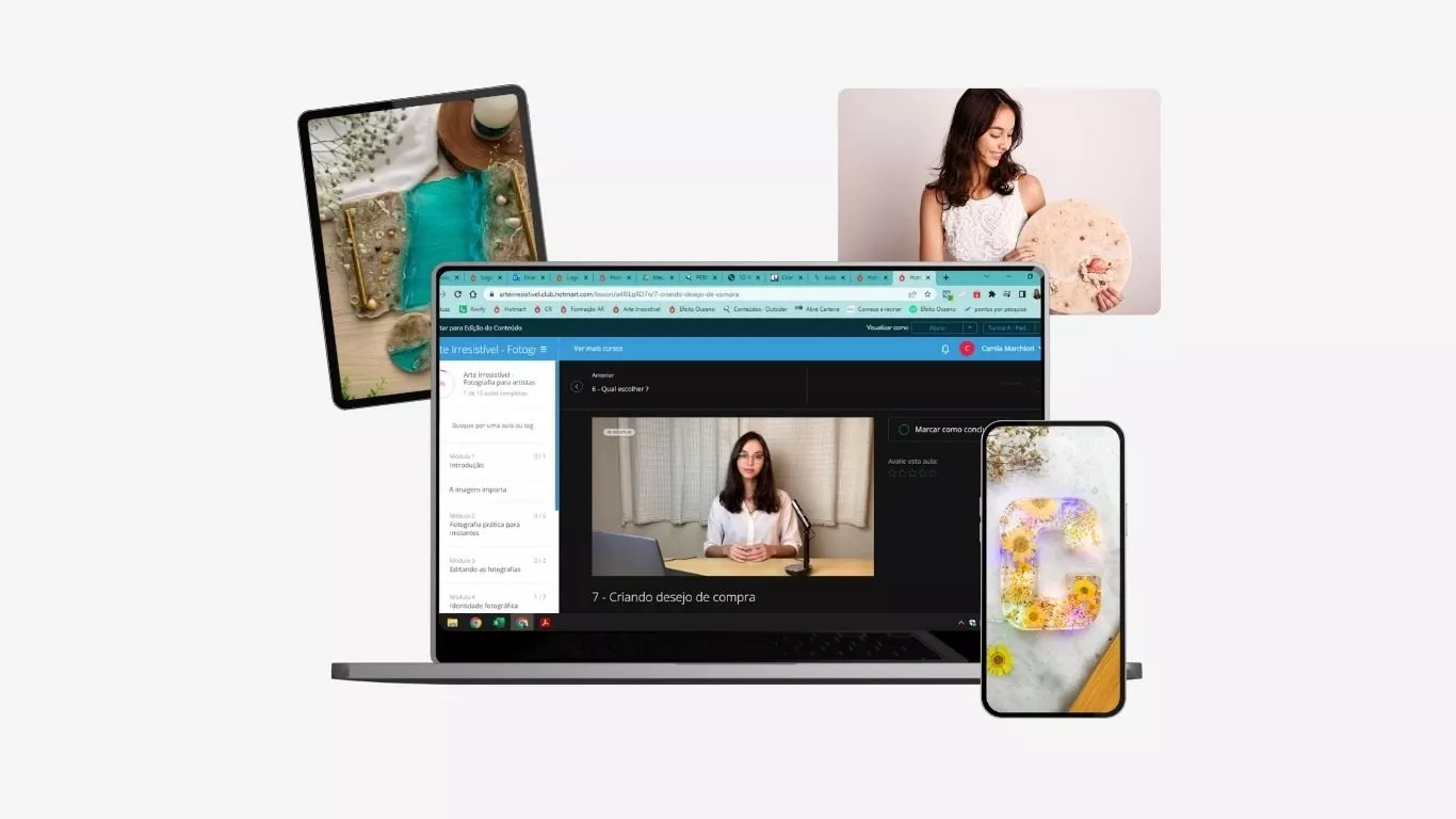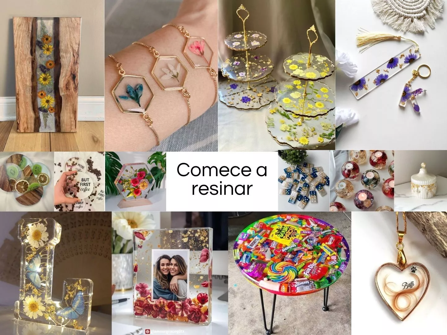 Você vai aprender a criar joias, chaveiros, dominós, marca-páginas, bandejas, eternizações, personalizações, quadros e muito mais - mesmo que nunca tenha tocado em resina antes.